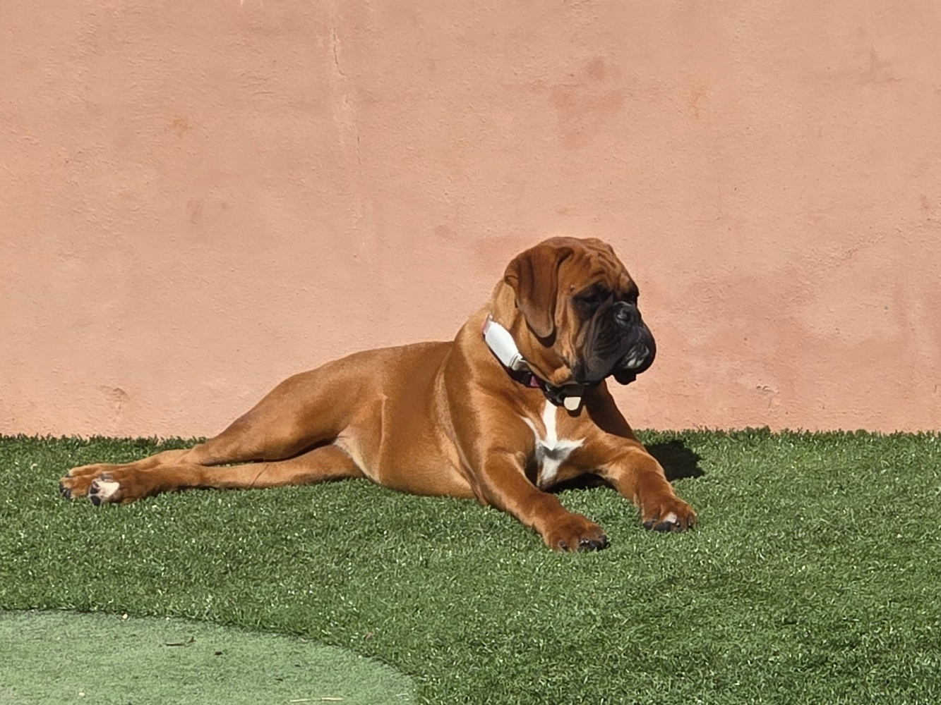 Despite her impressive size, Hana is incredibly affectionate and thrives on close connection with her family. Known for giving the best hugs, she carries herself like a true gentle giant and often believes she is a lap dog. Her easygoing, relaxed personality makes her one of the most naturally balanced and affectionate Boxers we have encountered.